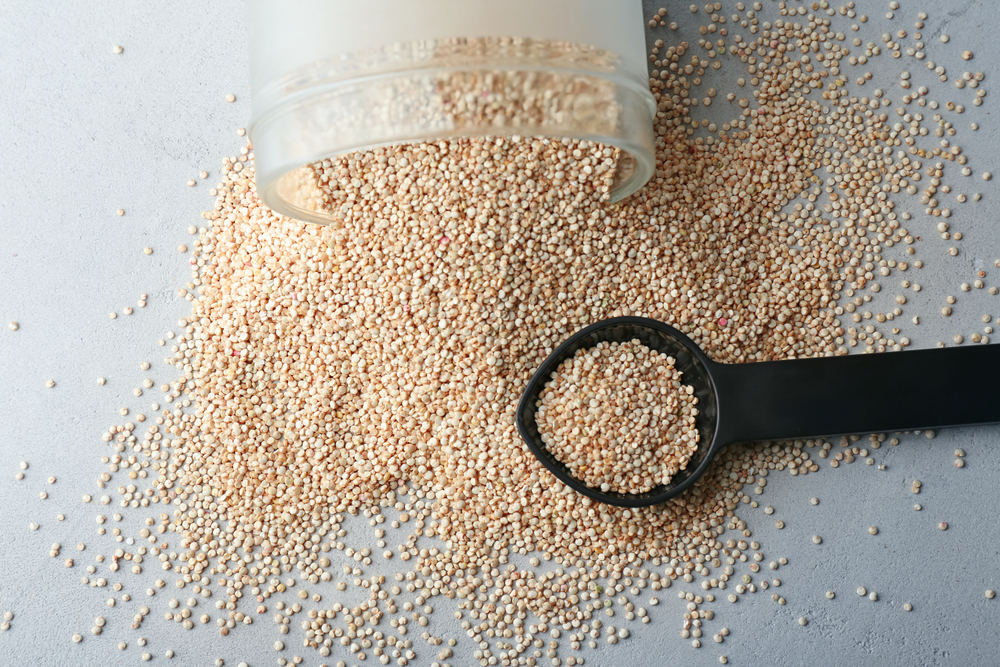 2. Spoon with quinoa seeds on table