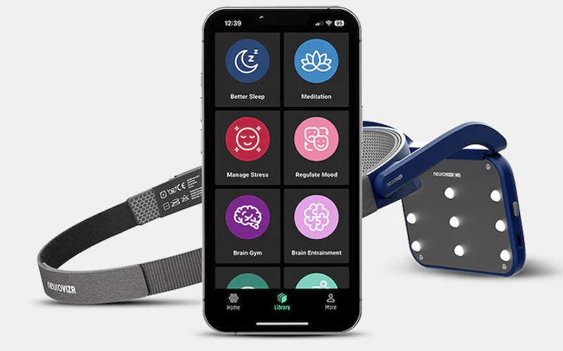 Он работает через нейровизуализацию — ритмичные световые импульсы, которые мягко синхронизируют работу мозга.