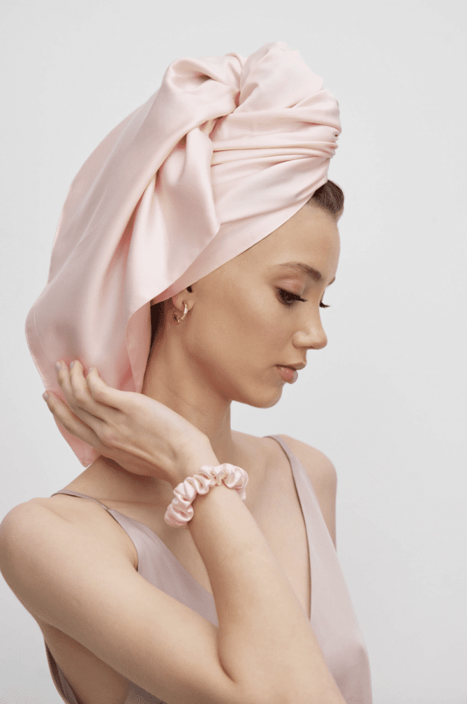 Полотенце состоит из двух слоёв – один из шёлка Mulberry, второй из экологически чистого тенселя. Натуральная зеркально-гладкая фактура ткани сглаживает кутикулу, полирует волосы и придает им дополнительный блеск. Для усиления эффекта стоит не просто промокнуть волосы полотенцем, а повязать его в виде легчайшего тюрбана поверх сформированных кудрей и походить в нем некоторое время.