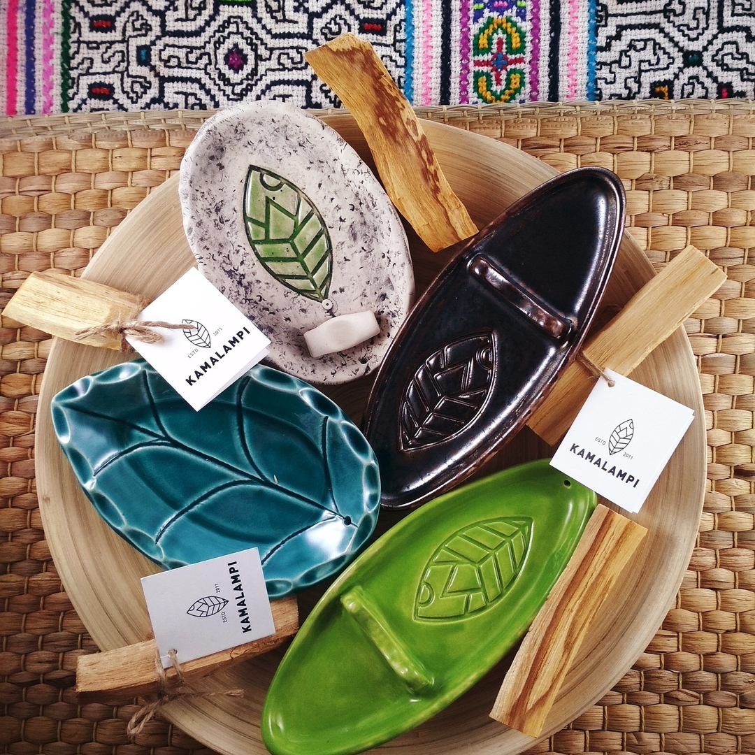 В фирменных подставках под благовония с логотипом KAMALAMPI раскрывается истинная эстетика практики окуривания. Они помогают почувствовать единство с природой, усиливая энергию во время практик. Подставки можно использовать для палочек Пало Санто,  ароматических палочек и свечей. Подставка с удобным держателем эргономична и не занимает много места.