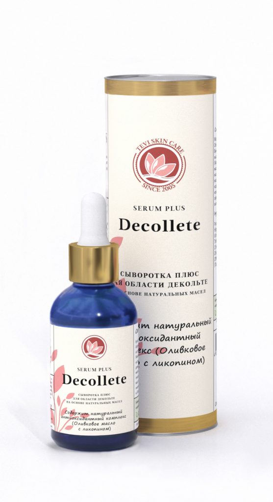 Сыворотка TEVI Плюс для Области Декольте для возрастной кожи. Кожа в области декольте чувствительная, склонная к сухости, ранним признакам старения. Сыворотка помогает нормализовать водно-липидный баланс, обладает антиоксидантным и противовоспалительным действием, стимулирует процессы обновления и помогает предотвратить преждевременное старение области декольте. Сыворотка защищает возрастную кожу области декольте от неблагоприятных воздействий окружающей среды, увлажняет и питает кожу, улучшает ее внешний вид, помогает коже сохранить здоровье и красоту.