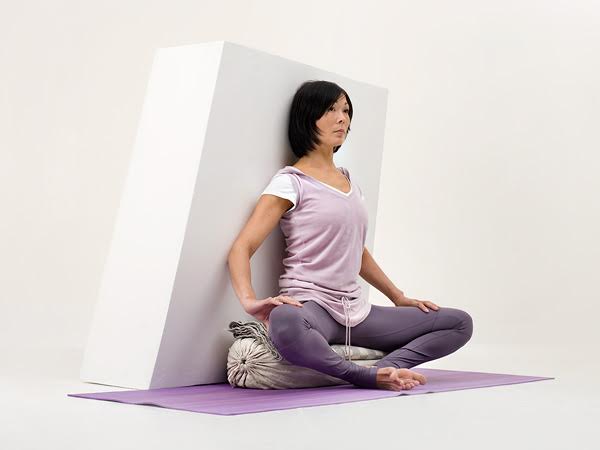 Экипировка: вам понадобится болстер (специальный валик для йоги), кирпич (его можно заменить подходящей по размеру книгой) и несколько одеял.
