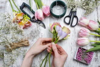 Примеры пошагового составления 100 букетов, начиная от сервировки одного цветка и заканчивая многослойными композициями из множества растений разных сортов, предст …