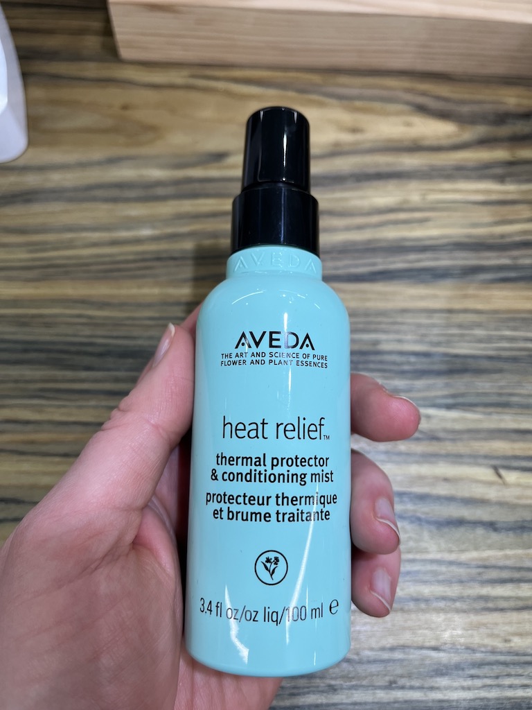 Перед укладкой на волосы обязательно наносится термозащита – у Aveda это спрей в ярком флаконе оттенка «тиффани». И волосы ложатся такой роскошной свежей волной, что настроение становится еще лучше.