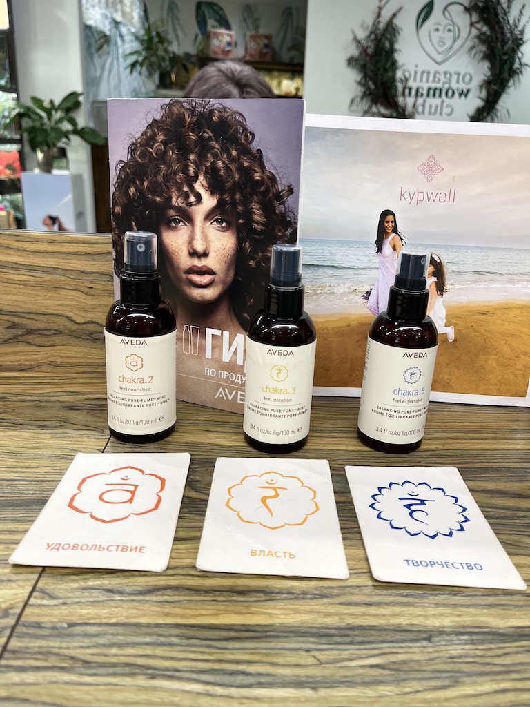 У Aveda есть еще одна фишка – аромаритуал, которым сопровождают любую процедуру в салоне. С него можно начать, чтобы перезагрузиться после «улицы», а мы им закончили. Смысл в том, что ты интуитивно выбираешь три из семи карт, которые соотносятся с семью чакрами, потом слушаешь три аромата, связанных с выбранными картами, и останавливаешься на одном – том, что соответствует твоему сегодняшнему состоянию. Тебя окутывают этим ароматным облаком и выполняют массаж воротниковой зоны.