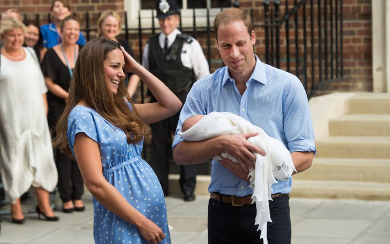 Кейт Мидлтон с принцем Уильямом и новорожденным сыном