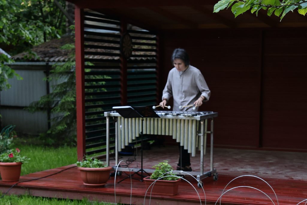 Началось всё с кино: в летней беседке мы ставили проектор и смотрели фильмы под шум ветра и стрёкот сверчков. Но однажды захотелось живого звука, и мы пригласили любимую всей нашей семьей композитора и музыканта – Кристину Дзейтову с вибрафоном. Этот инструмент создаёт особую атмосферу — его звук похож на прозрачные капли, растворяющиеся в вечернем воздухе. Приехало много друзей, были домашние пироги, коломенские калачи, пастила, чай, вино.