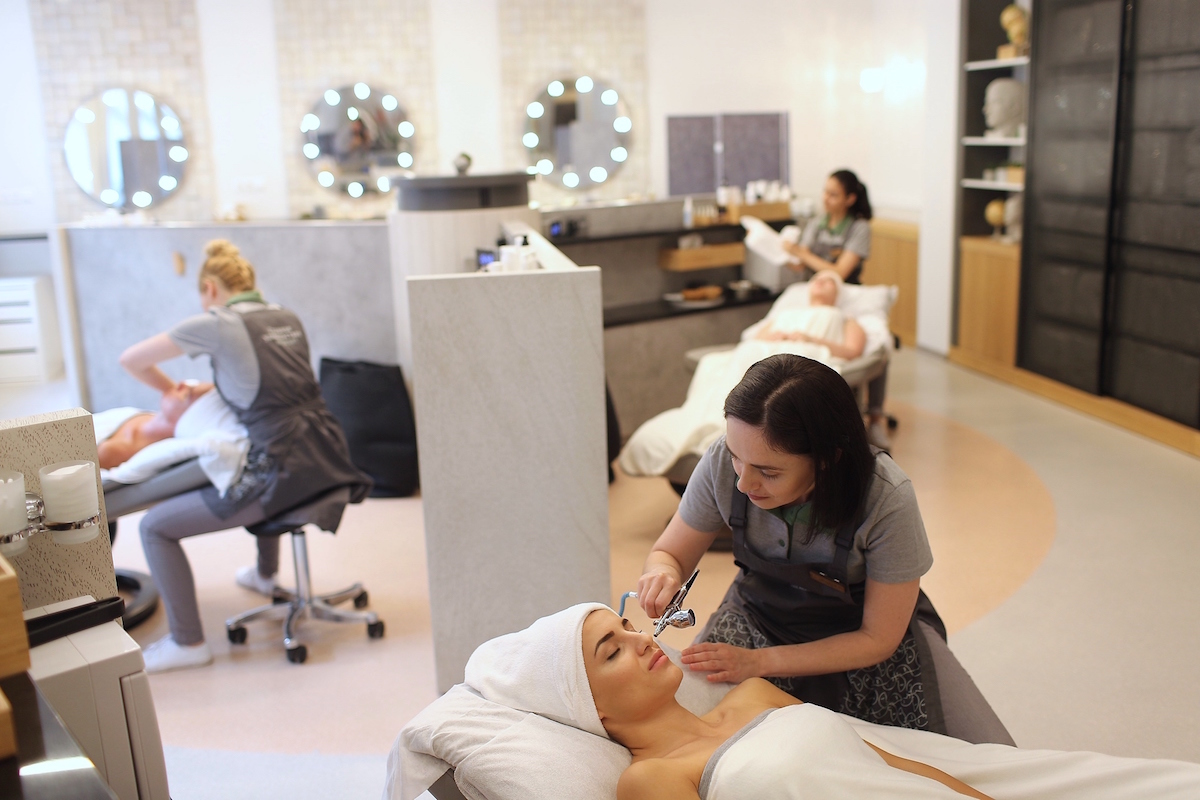 Уход делается с учетом полученного при диагностике бьюти-кода и включает в себя очищение, контрастный душ для лица, питательную сыворотку, которую наносят в технике аэромассажа, а после – альгинатная маска и завершающий крем.