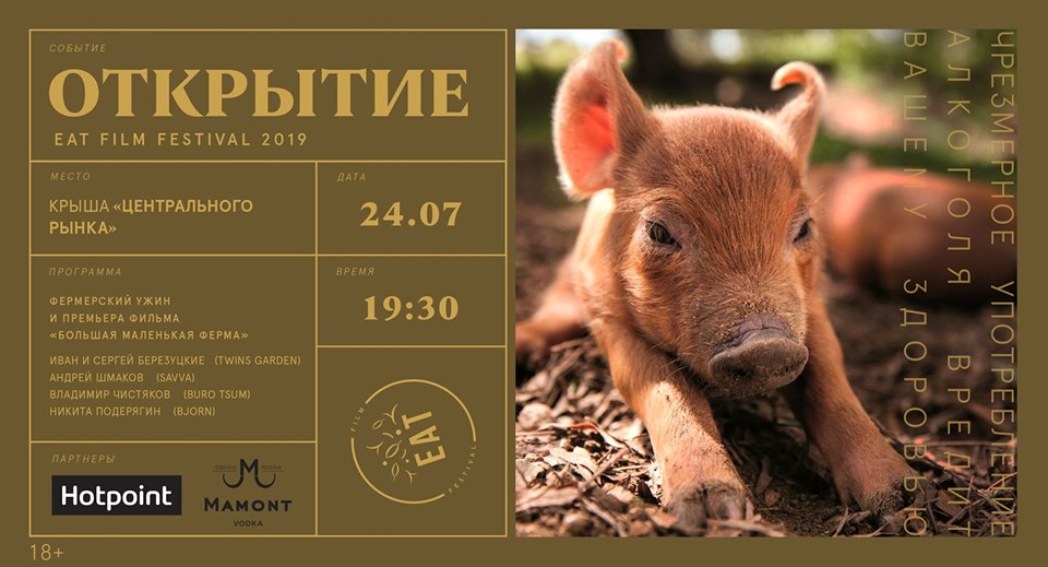 В этом году открытие Eat Film Festival посвящено экологичному фермерству. 24 июля на крыше Центрального рынка вас ждет поп-ап ужин от известных московских шефов, которые следуют принципам локаворства и zero waste. Повара – Сергей и Иван Березуцкие (Twins Garden), Андрей Шмаков (SAVVA), Владимир Чистяков (Buro TSUM) и Никита Подерягин (Bjorn) – приготовят блюда из сезонных овощей, выращенных на небольших местных фермах.