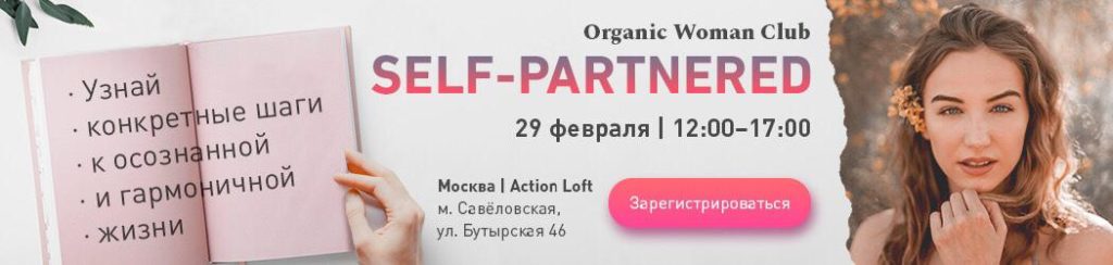 Как построить гармоничные отношения с собой — самым важным человеком, который может сделать тебя счастливой? Вы сможете узнать 29 февраля на Organic Woman club «self-partnered». Анна Комлова расскажет, как не обращать внимание на давление общества и сможет ответить на волнующие вас вопросы. Подробная информация о встрече здесь.