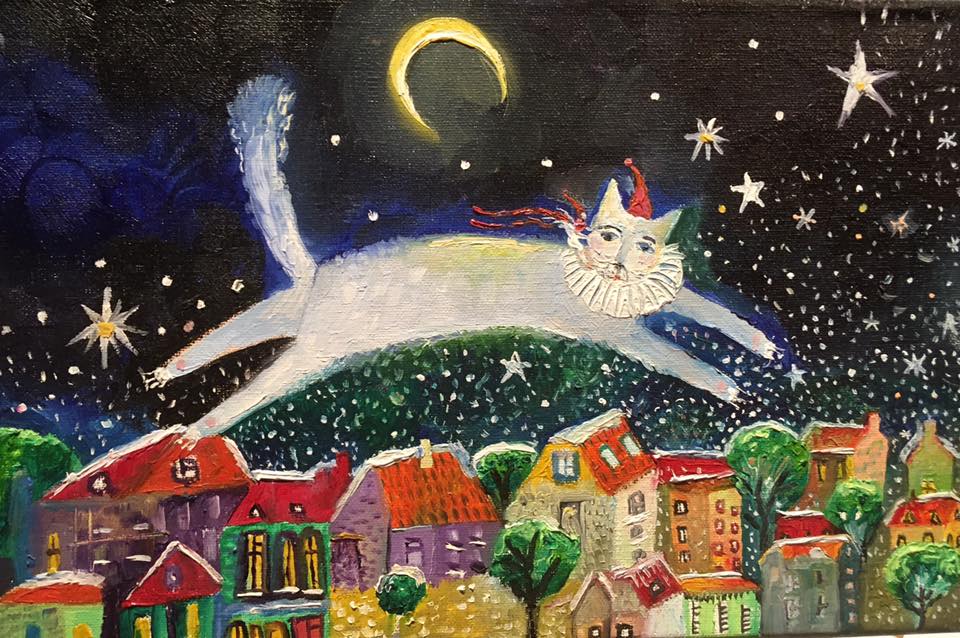 Мои картины разговаривают со зрителем простым и доступным языком. Сначала, поскольку они написаны очень примитивно, заставляют улыбнуться, как и все, что связано у нас с детством.