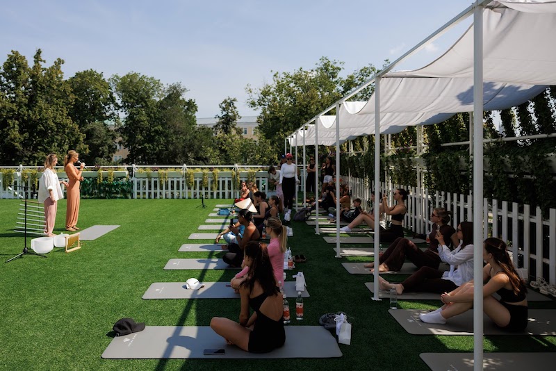 Гостей ждала заряжающая тренировка на открытом воздухе под руководством квалифицированного тренера студии Let`s Do Pilates. Занятие йогой с базовыми асанами и дыхательными практиками помогли участникам настроиться на гармонию с собой и окружающим миром.