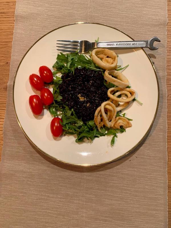 - Черный рис с кальмарами.