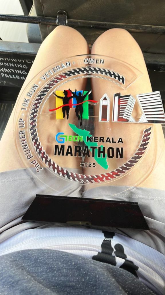 Как-то в соцсетях встретила у агента по бронированию отелей выражение «эконом в экономе», что значит самое дешевое, проще некуда. Я как раз тот «самый большой любитель среди любителей». Не подписана ни на одного спортсмена, занимаюсь без тренера и исключительно ради фана. Без компрессионных гольфов и элитной обуви за 25K. Ведь для того, чтобы начать, нужно просто выйти на улицу и побежать. Вот я и побежала, находясь в столицы Кералы, и даже заняла второе место среди женщин-ветеранов – так здесь называют тех, кому за 35.