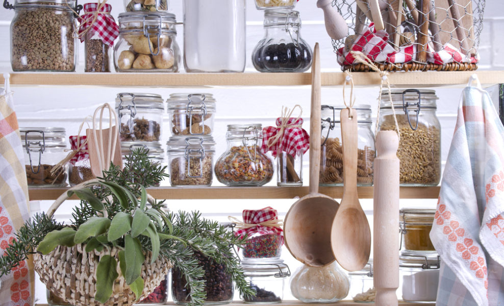 • Стекло — лучшая тара. Храните специи и крупы в стеклянных банках с плотно закрывающейся крышкой. Так вы убережете их не только от вредителей, но и от нежелательных кухонных запахов, влаги и пыли. Кроме того, прозрачные емкости позволят вам всегда видеть их содержимое.