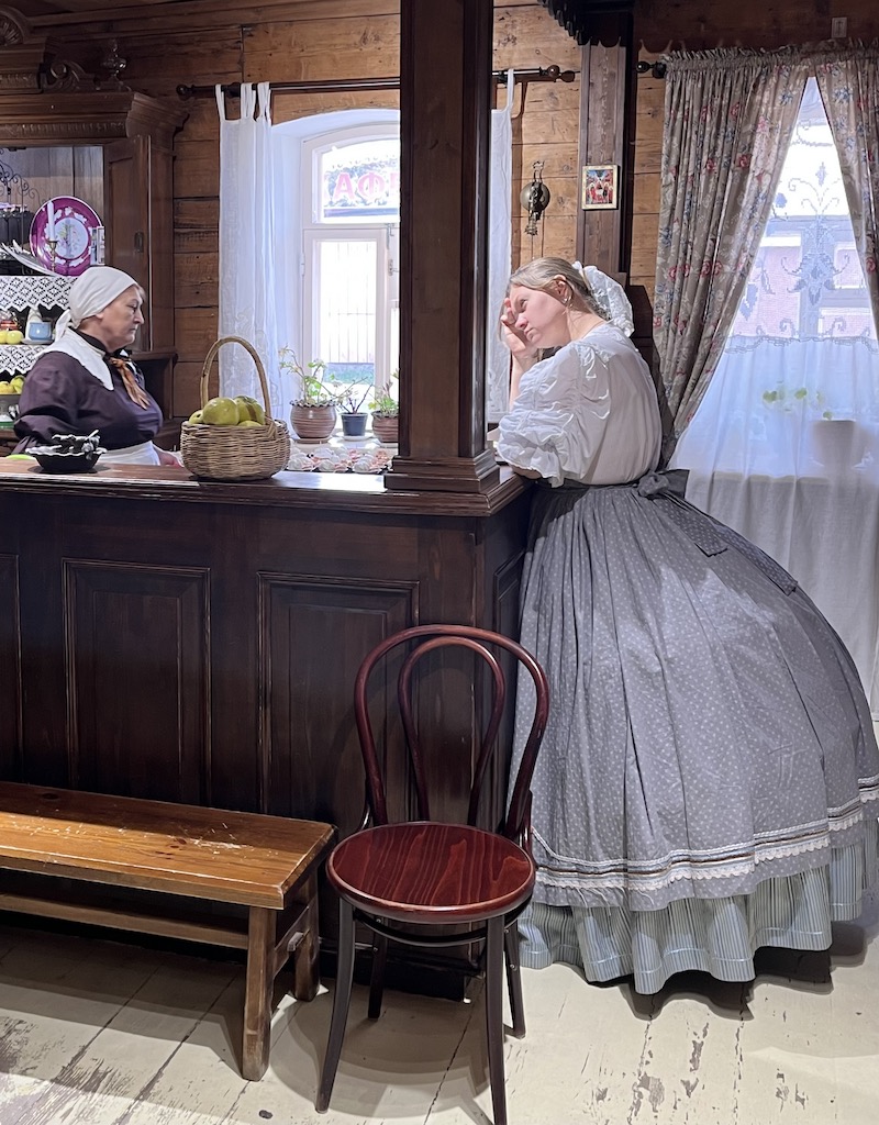 В финале можно, по рекомендации Юли Кривопустовой, купить душегрейку в «Доме штапельного платья». Шьют наряды в Суздале: из платьев, при желании, тоже можно что-нибудь выбрать, но двусторонние, утепленные, в цветах или орнаментах курточки – точно надо брать, носить с радостью и вспоминать Коломну.