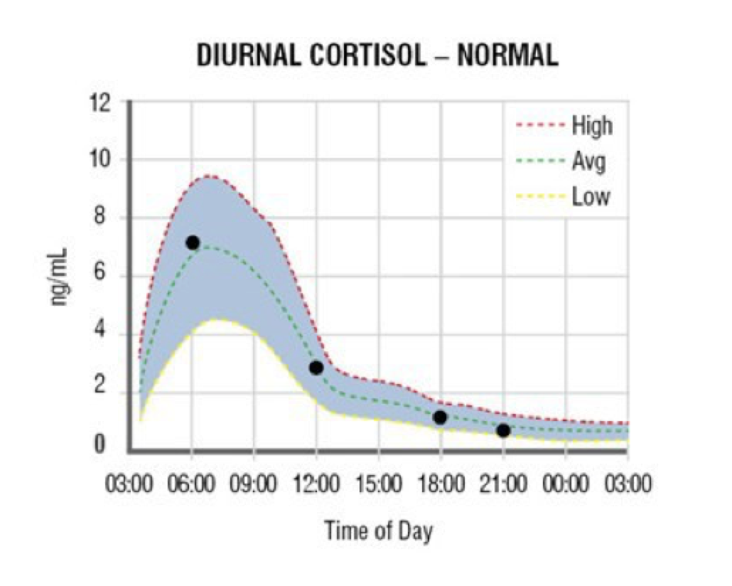 В идеальном состоянии кортизол максимально повышен утром, что позволяет нам просыпаться бодрыми и оставаться сосредоточенными в течение дня. Он постепенно снижается днем и вечером. Но если ваша энергия быстро истощается во время привычной деятельности, это может быть предупреждением о нарушении кривой кортизола. Частые простудные заболевания или взрывное состояние являются признаками дисбаланса уровня кортизола. Вы можете определить свой уровень кортизола с помощью лабораторных методов, но выявить действительный дисбаланс бывает непросто, для этого необходимо комплексное обследование.