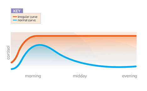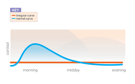 В идеальных условиях наиболее высокий уровень кортизола отмечается утром, что помогает в течение дня сохранять необходимую его концентрацию. Затем, после полудня, отмечается постепенное снижение уровня гормона. Но, как отмечает Филомена Триндэйд, специалист Института функциональной медицины, если уровень энергии начинает падать в моменты обычной активности, это свидетельствует о нарушенном характере секреции гормона. Ранними признаками дисбаланса могут служить частые простуды или эмоциональные вспышки. Для оценки уровня кортизола проводят исследование слюны.