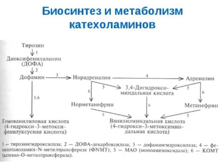 • Наличие клостридиальных маркеров нарушает метаболизм дофамина, приводит к снижению адреналина и фактическому истощению надпочечников.