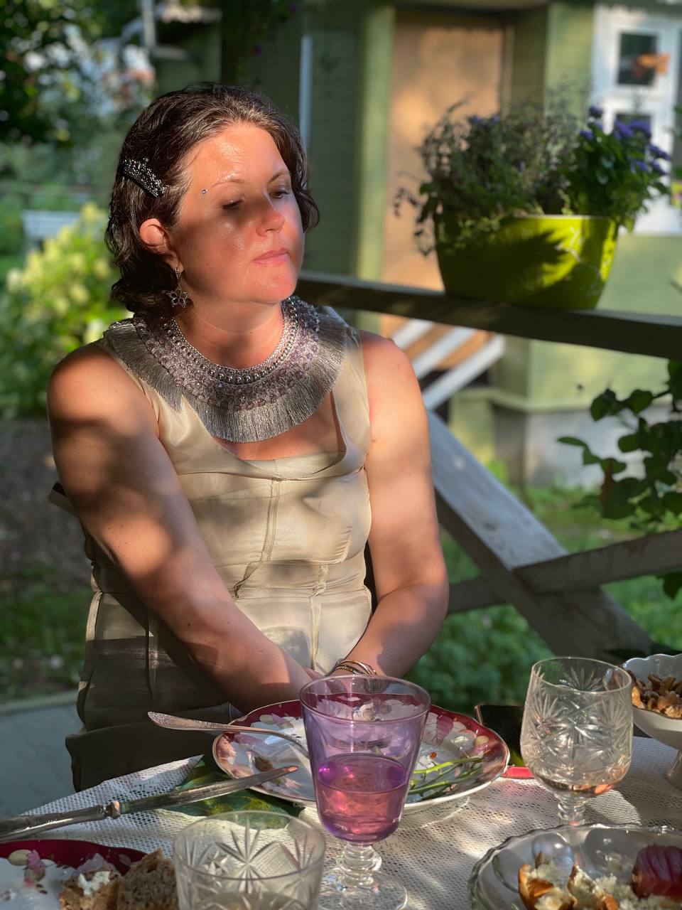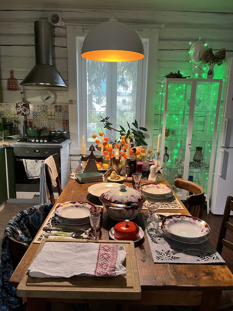 В моей загородной жизни появилась традиция: мы собираемся с подругами и читаем вслух классику, исключительно бумажные книги. Почему чтения медленные? Во-первых, потому что с обсуждениями и рефлексией. Во-вторых, все это проходит за накрытым столом: придумали составлять концептуальное меню в зависимости от темы чтений или выбранного автора. И, конечно, это повод нарядиться. Рассказываю подробнее и показываю.