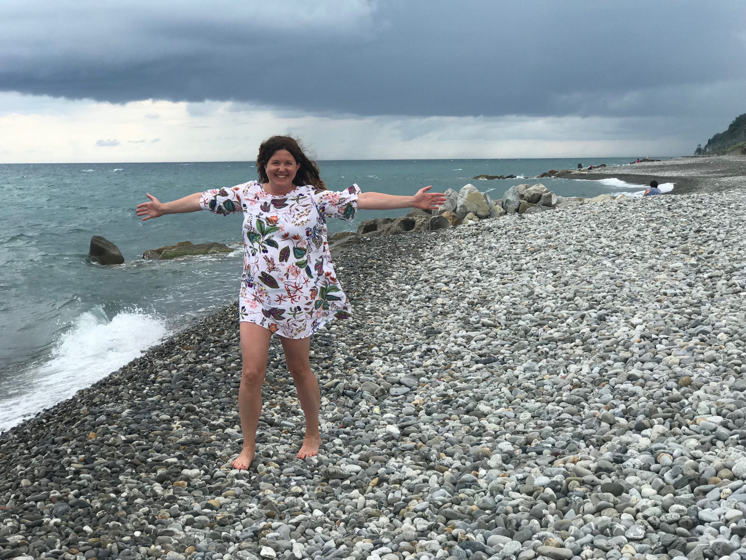 Как сказала мне мой любимый мастер Лена Родичева, с которой я уже второй год совершаю путешествие к себе, своей красоте и молодости, не всегда нужно пересиливать свой страх и ломиться в гущу событий. Послушать себя, прислушаться и найти ту точку, из которой тебе сейчас комфортно быть в процессе. То самое искусство маленьких шагов. Для меня оптимальным решением, когда штормило, было сесть на гальке так, чтобы волны окатывали ноги, бедра, живот. Прекрасная антицеллюлитная программа и абсолютно бесплатно.