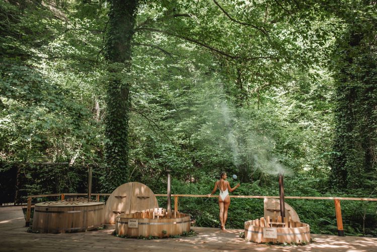 Сердце глэмпинга — спа-комплекс, который состоит из нескольких саун и даже японской купели Фурако. Выглядит все максимально экологично и естественно.