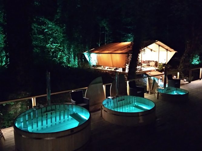 - Спа-комплекс. В течение года я посещаю около десяти разных мест, но скажу с полной уверенностью – спа в глэмпинге отличное. И, конечно, обаяния ему добавляет открытое пространство.
