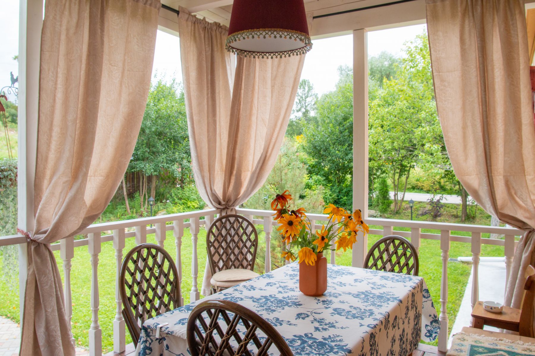 В распоряжении гостей две застекленные веранды, беседка и крыльцо-беседка с выходом в сад.