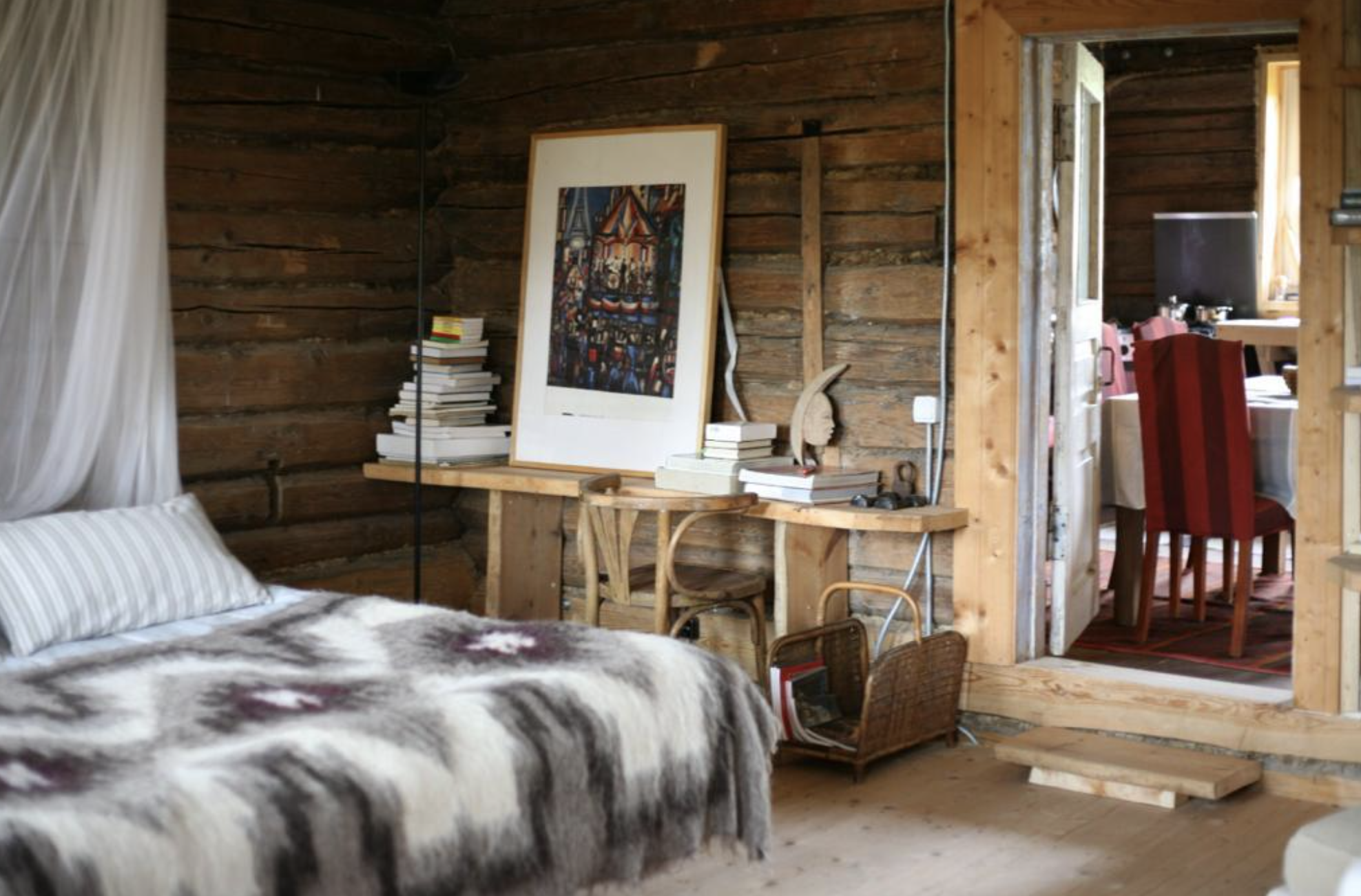 Здесь живет атмосфера русской усадьбы с ее праздностью, теплотой и размахом, с бесконечным обеденным столом, просторной верандой, книгами, привезенными из Парижа. И все это одновременно удивительным образом сочетается в нем с духом русской избы — толстыми бревенчатыми стенами, грандиозной печью, множеством топчанов и лежанок, с любовно собранными Ирэн Коммо, француженкой, владелицей усадьбы, по окрестным деревням.