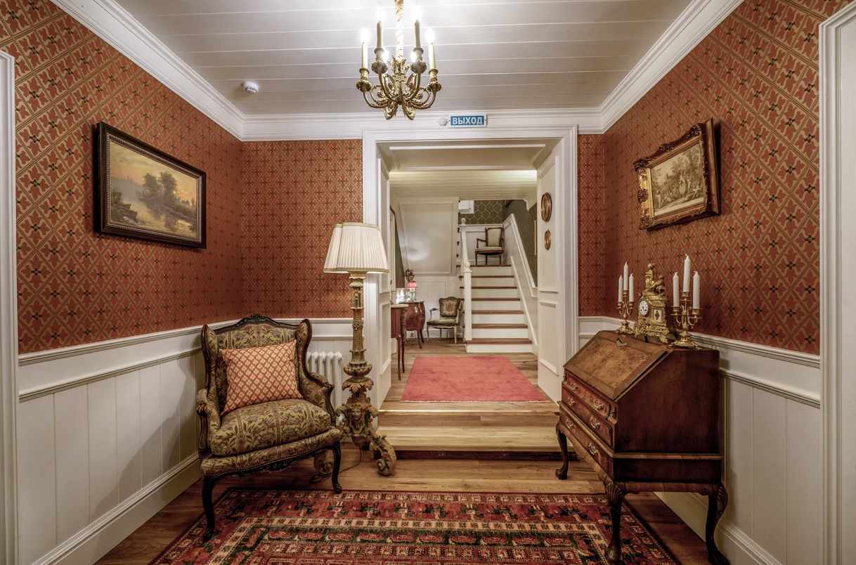Дизайнеры и декораторы успешно воссоздали атмосферу усадьбы зажиточного купца XIX века.