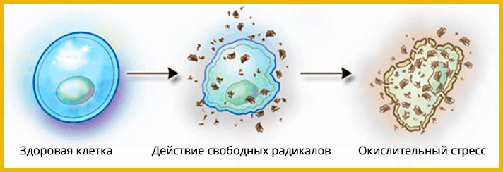 Свободные радикалы (неустойчивые частицы, характеризующиеся наличием неспаренных электронов) буквально бомбардируют здоровые клетки, забирая у них недостающие электроны. Таким образом, атакованные молекулы также превращаются в свободные радикалы, что вызывает цепную реакцию, ускоряя процессы старения организма.