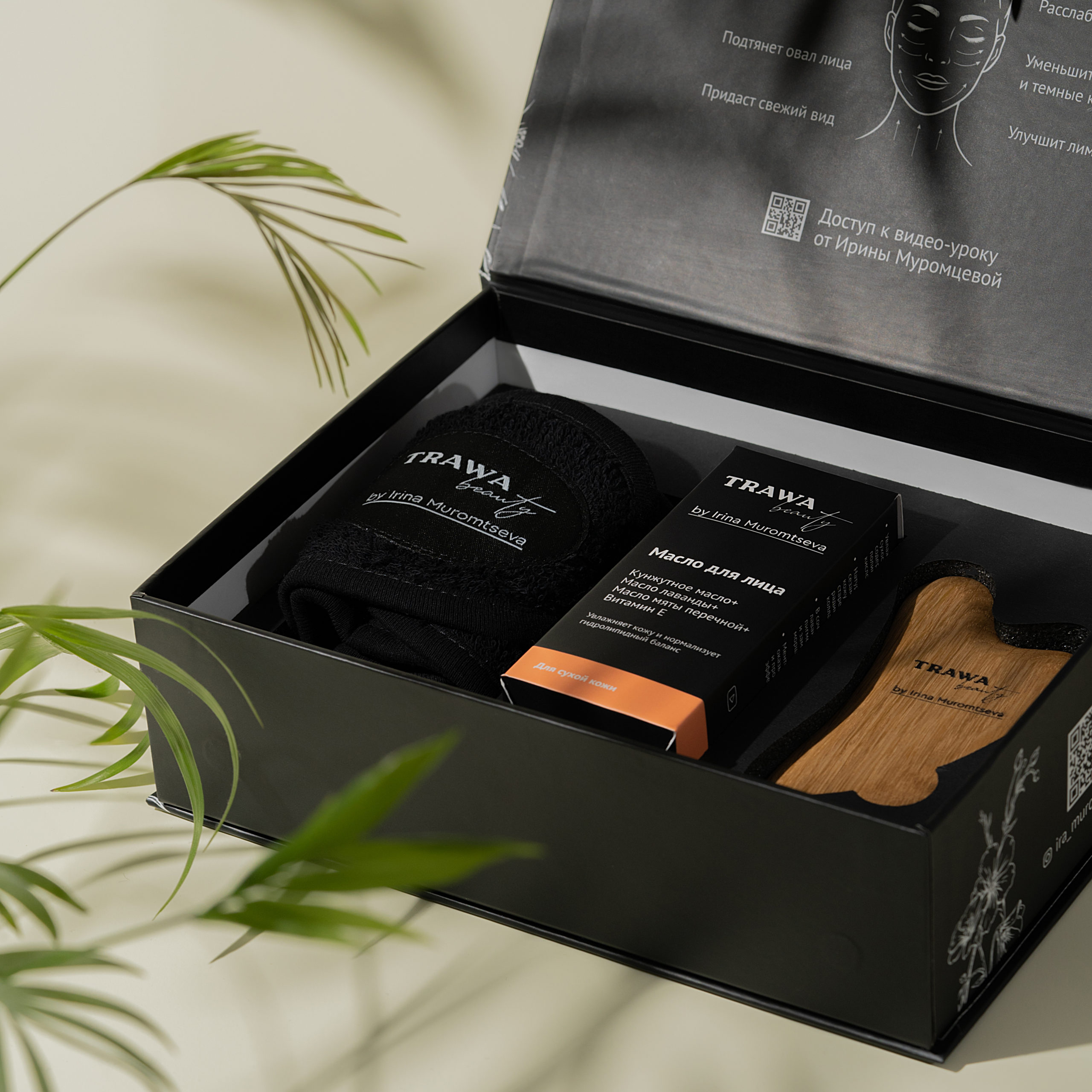 Для полноценной домашней процедуры массажа бренд также предлагает наборы для ухода за лицом, состоящие из косметического масла на выбор, мягкого ободка, скребка гуаша из натурального дерева и удобной техники массажа в формате видео-уроков.