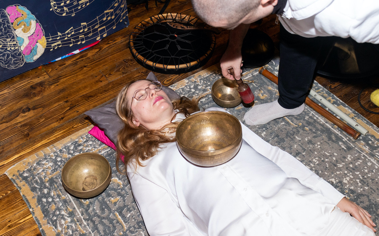 YahmurSpace — звукотерапевтические практики, которые решают проблемы хронического стресса, перенапряжения и выгорания можно было протестировать прямо на клубе. А вообще это центры звуковой терапии и релаксации в Москве, где проходят сеансы медитаций с использованием гармонизирующего воздействия звуковых вибраций на организм человека.