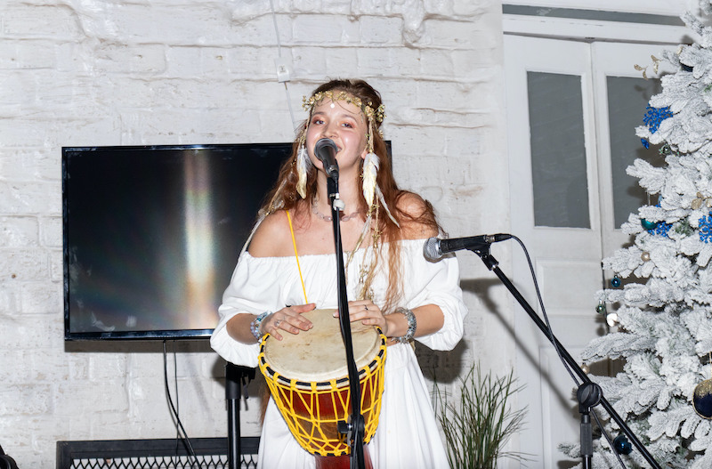 В конце снова была музыка: «космические феи» Solar Sisters играли на ханге, скрипке, бубне и барабанах, плюс роскошный вокал – и был не только «космос», но и вполне известные хиты в неожиданном исполнения, включая новогоднюю ABBA и трогательную «Если снежинка не растает» из к/ф «Чародеи».