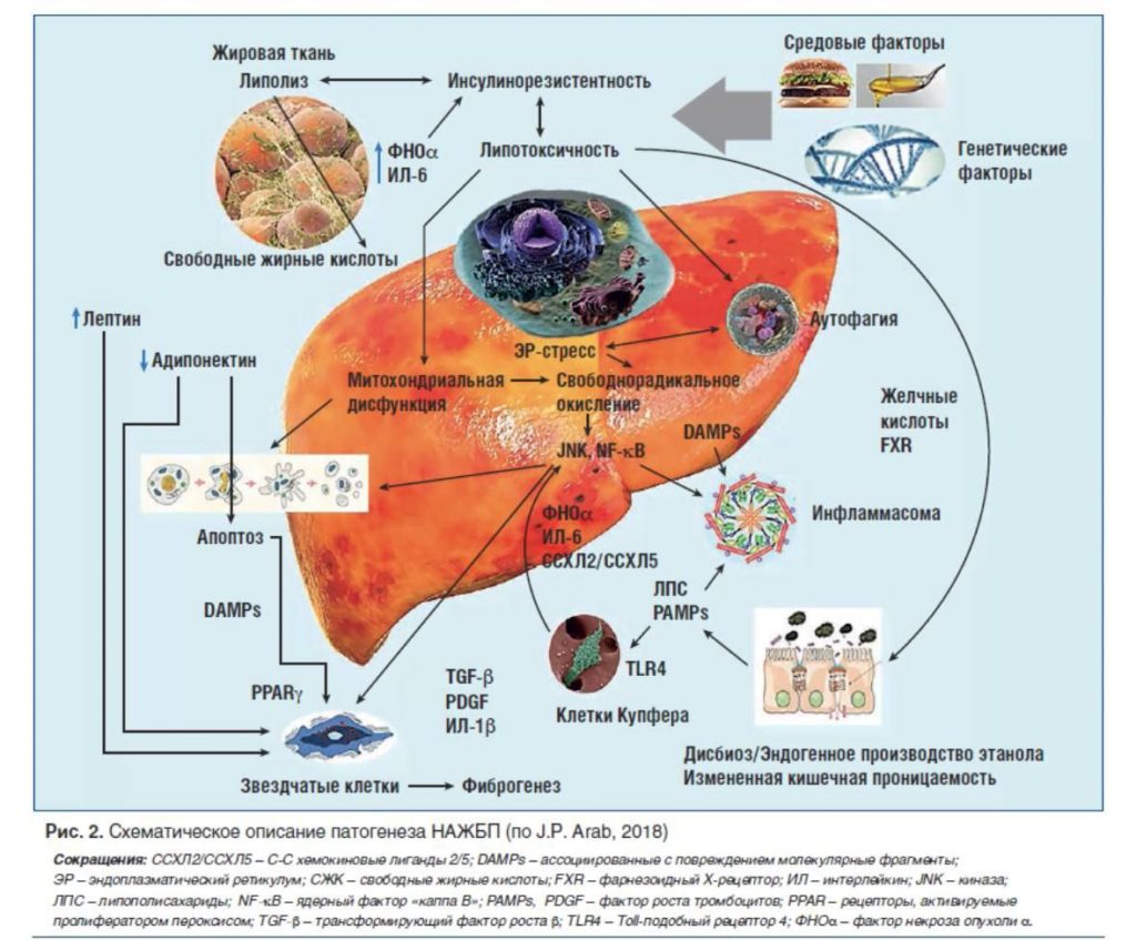1. Жир, конечно, накапливается в клетках печени, и они растут, там возникает воспаление и фиброз, и клетки теряют свою функцию.