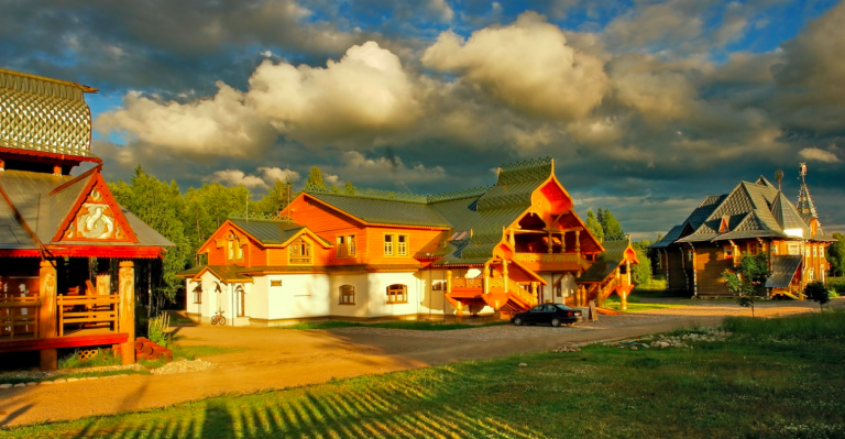 Мандроги – уникальное поселение, все постройки которого выполнены в стиле национальной русской деревни. Здесь можно посмотреть работы местных гончаров, резчиков по дереву, ткачей. Для настроения – впечатляющий музей водки и самый большой валенок в мире.