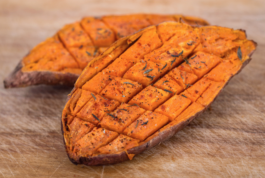 Оранжевый сладкий картофель содержит повышенный уровень бета-каротина и витамина А, помогает справиться с дефицитом последнего и поддержать тем самым здоровье зрения. Кроме того, активные соединения продукта способны помочь справиться с синдромом сухого глаза и в целом оказывают противовоспалительный эффект на поверхность глаз.