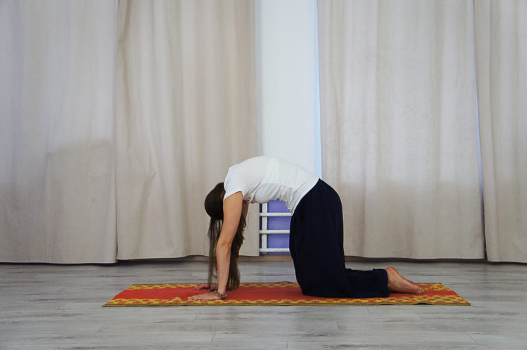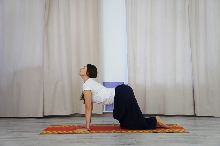 Марджериасана мягко разминает позвоночник, воздействует на грудную клетку, запускает процессы, которые мы потом усилим в следующих асанах.