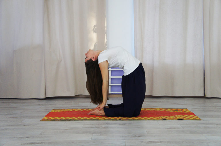 Также как и уштрасана, она интенсивно работает над раскрытием грудной клетки.