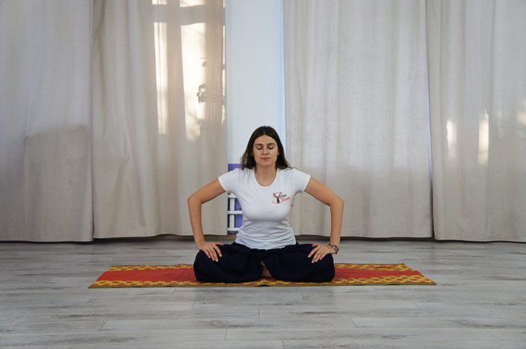 - И ещё несколько дыханий, сидя в сукхасане, позе со скрещенными ногами