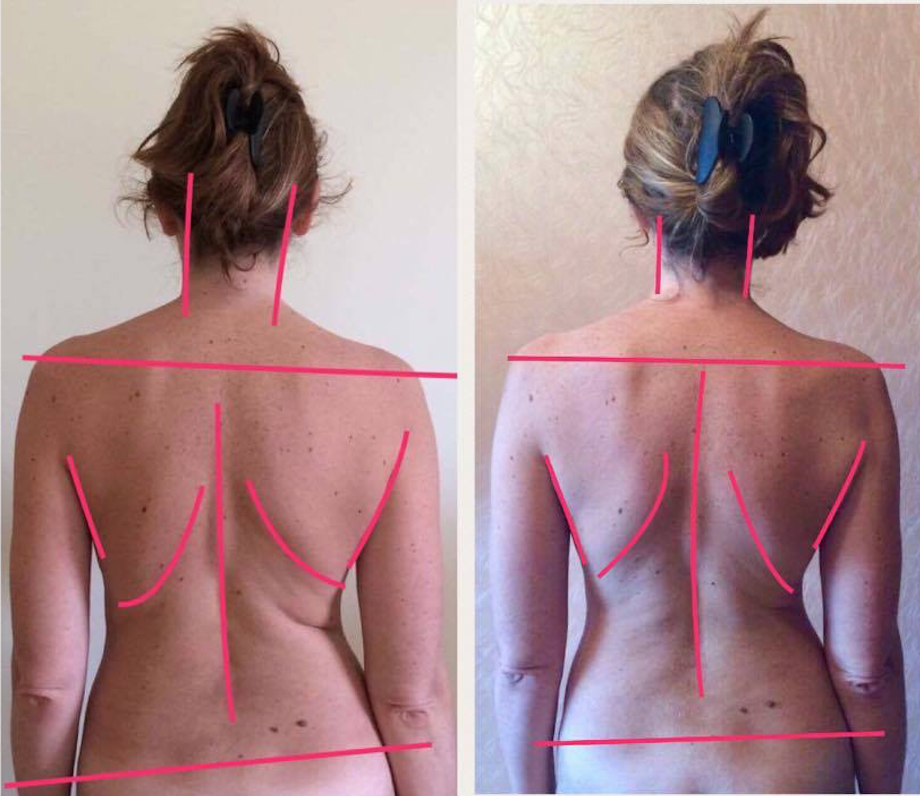 -Я выше объяснила, как возникают деформации. Когда мы планомерно выправляем таз, вслед за этим гармонизируем работу внутренних и наружных косых мышц, раскрываем грудную клетку, убираем сутулость, вынимаем вбитую в плечи шею, ставим ее на место, — и вот уже лицо начинает нормально кровоснабжаться, дренироваться, в него поступает кислород и питание, все мышцы и фасции гармонизируются, происходит естественное омоложение. Вот результат двухмесячной работы над выправлением осанки. Посмотрите на спину (фото выше) и на лицо.