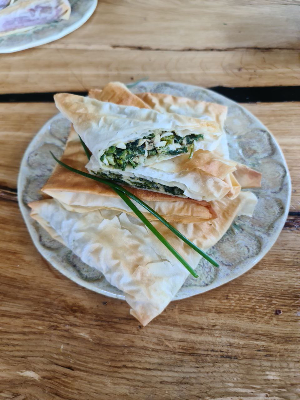 - Смазываем тесто оливковым маслом и заворачиваем треугольники, выпекаем 10-15 мин при 180 градусах.