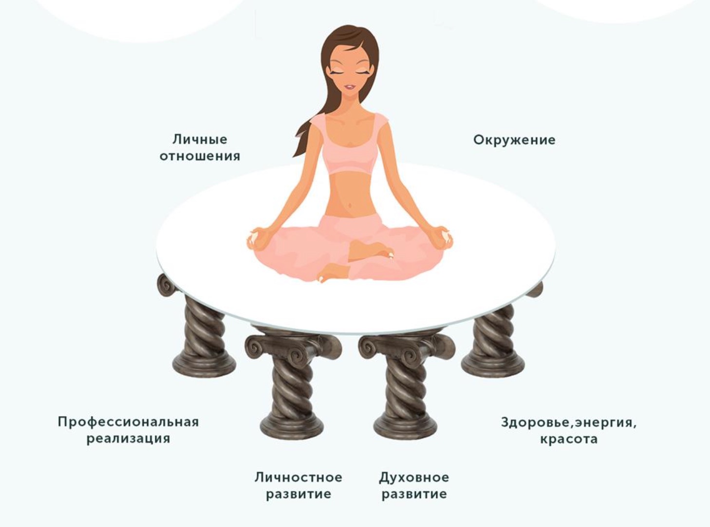 Параллельно с Профессиональной опорой в идеале мы также направляем много внимания на укрепление опор Здоровья/Энергии/Красоты, Личностного развития, Духовности и Окружения.