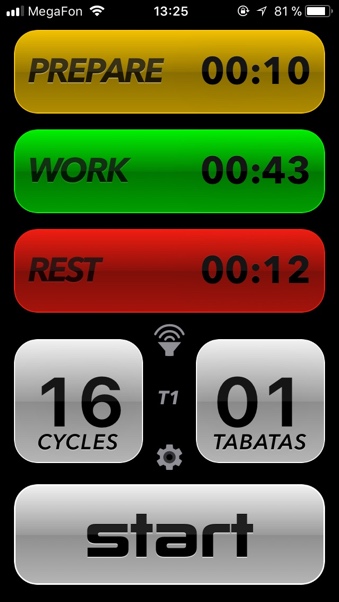 Вам нужно будет использовать любой интервальный таймер, где можно выставить два интервала, – на упражнение и на отдых, и количество кругов тренировки. Я рекомендую искать по словам tabata interval timer.