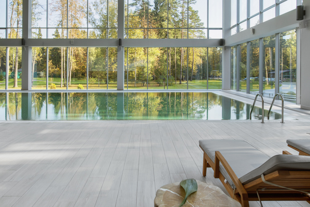 - Спа-зона. Такого бассейна, как в Verba Mayr, вы не найдете. Большой, с окнами в пол. Такое ощущение, что вы плывете по лесу. Хаммам, финская сауна, душ впечатлений – все это есть и сделано с душой и вкусом.
