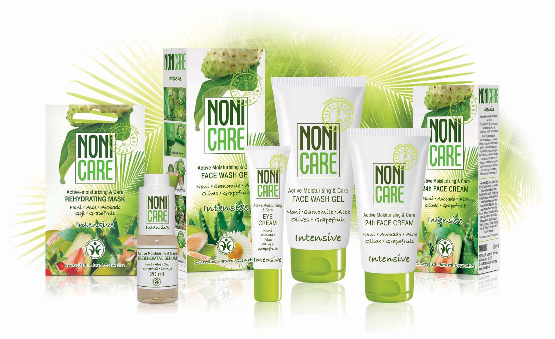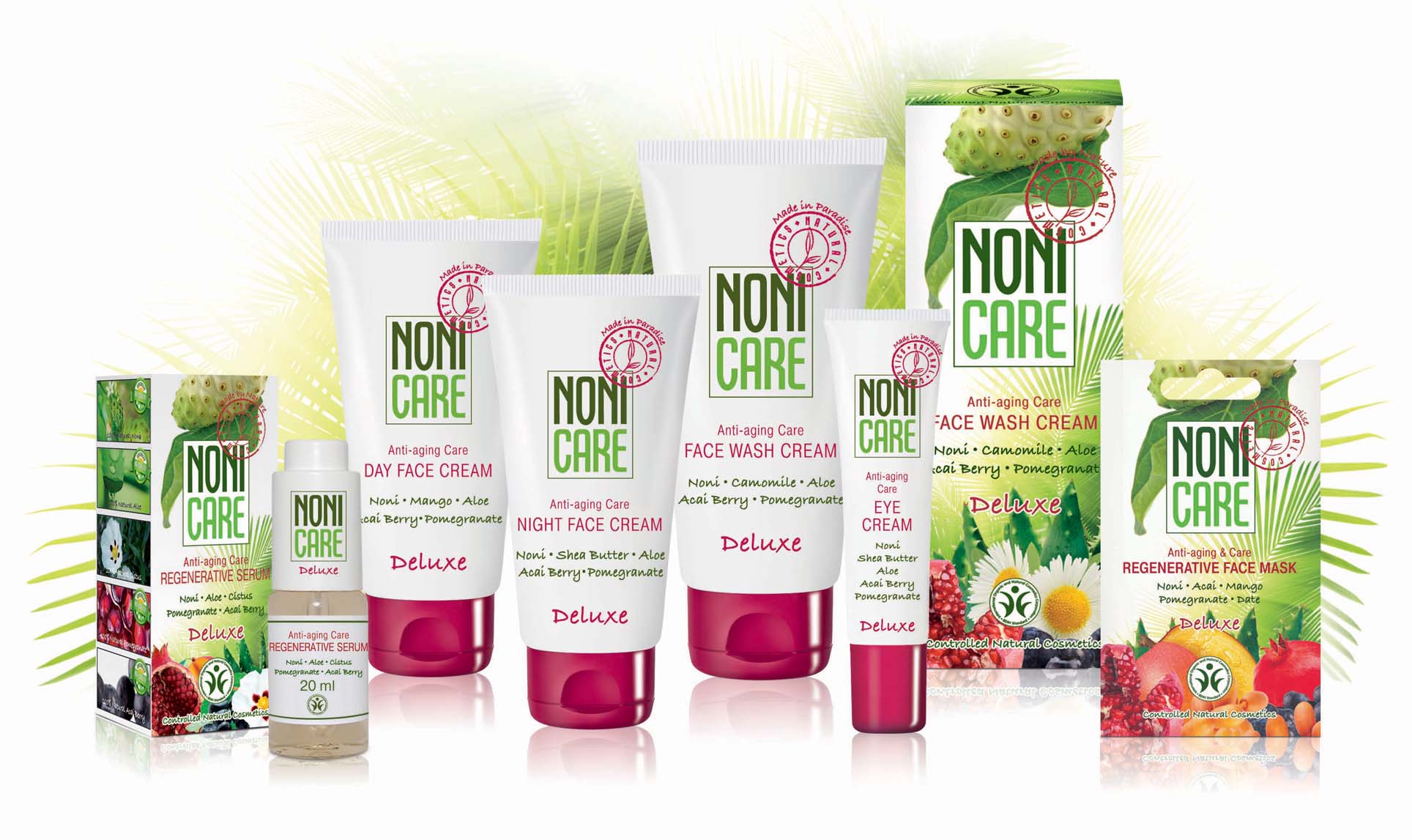 DELUX 40+ (где сок Нони смешан с экстрактами ягод асаи, граната, алоэ. Средства этой линии уменьшают глубину морщин, восстанавливают структуру кожи, устраняет возрастную пигментацию).