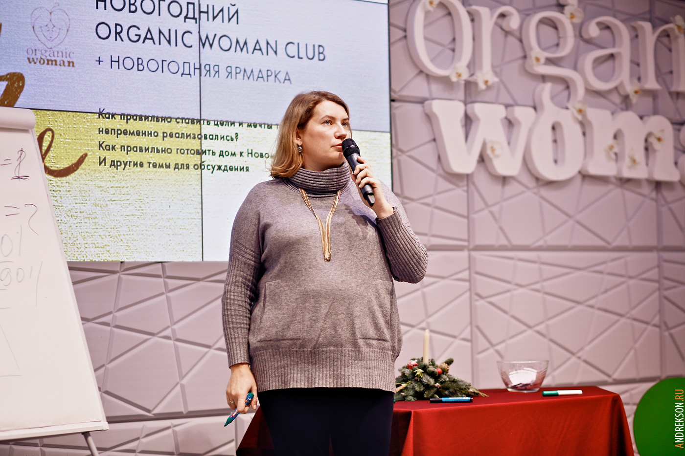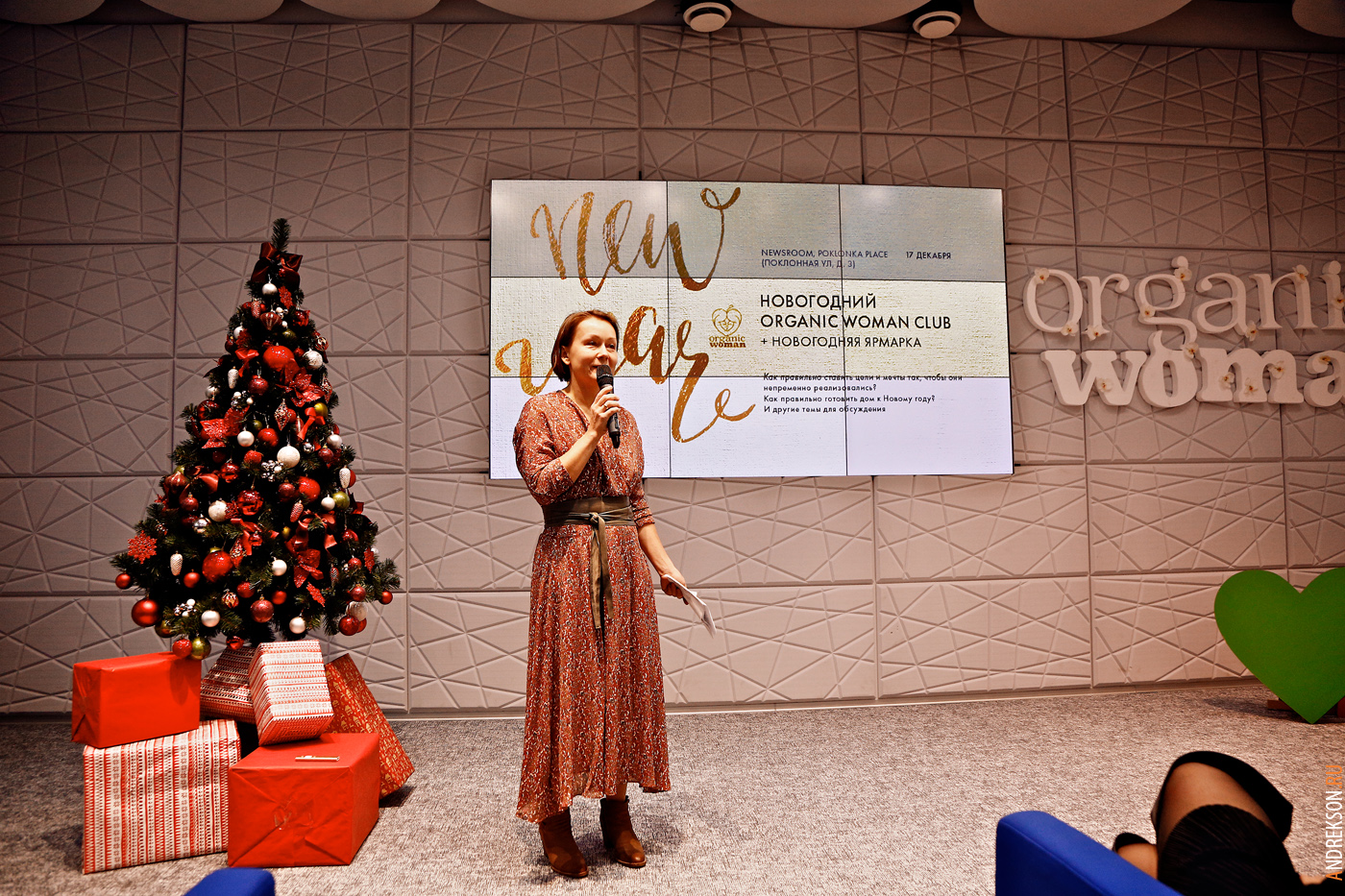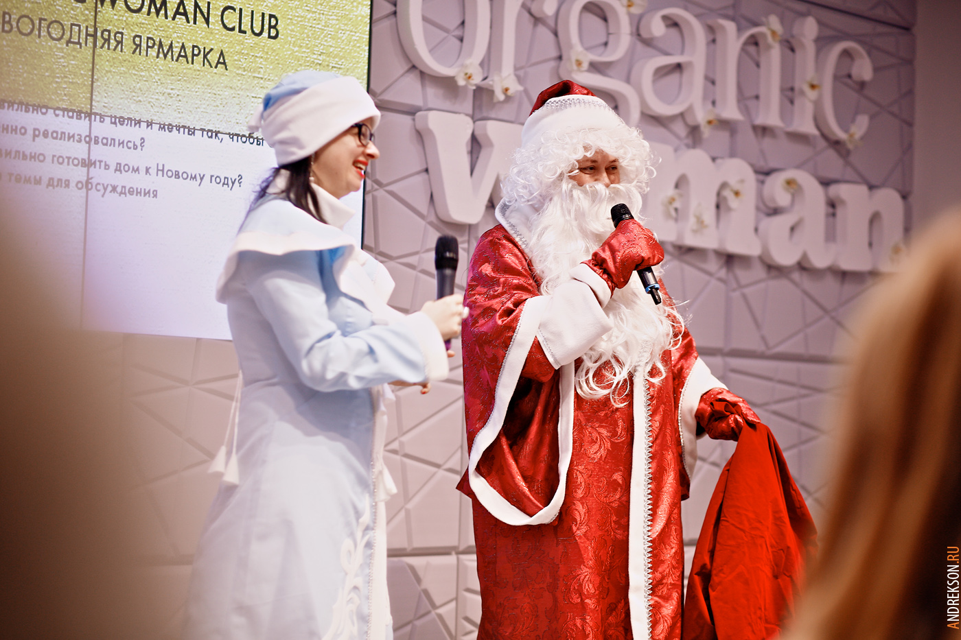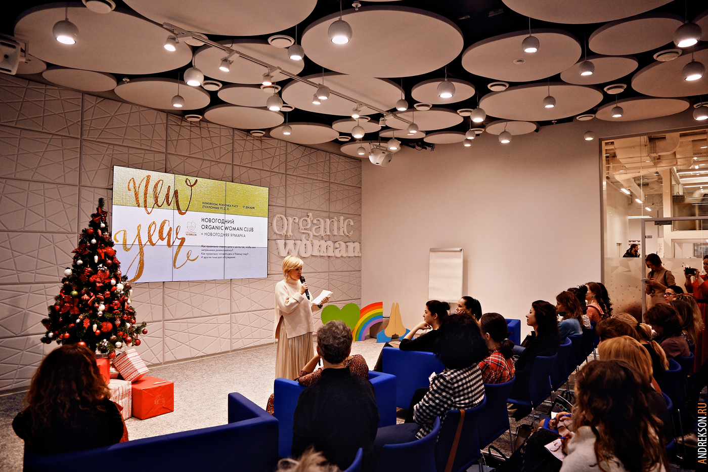 Новогодний Organic Woman Club особенный: на нем был один из самых больших органик-маркетов года, а также розыгрыш многочисленных подарков от Санты и Снегурочки.