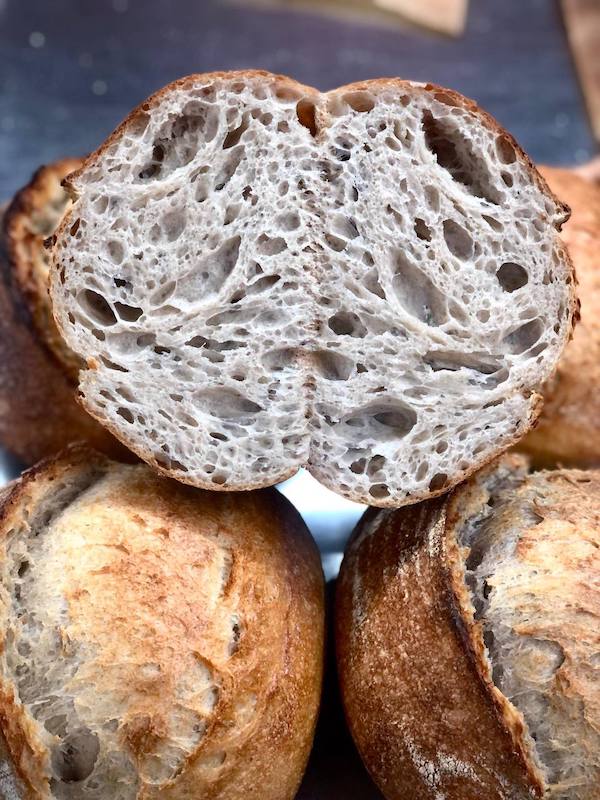 В процессе ферментации закваска, в основе которой молочно-кислые бактерии, делится всей пользой с хлебом. Напитывает его той самой ароматикой, что мы чувствуем, когда хлеб подает сигналы о своей готовности. Процесс ферментации для пшеничных хлебов – до 16-18 часов при температуре 5-6 градусов, это дает возможность всему полезному в зернышке раскрыться в хлебе и усвоиться организмом. Хлеб на ржаной закваске, напротив, ферментируется при комнатной температуре, так как ржаная не любит холод.