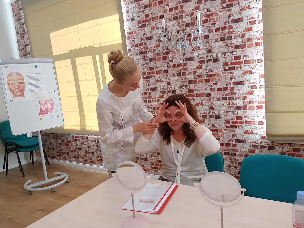 Для наглядности она показывала лица разных людей и, главное, свои фотографии – те изменения, которые произошли с лицом к 30 с небольшим годам, заставили ее сильно загрустить, сходить к разным косметологам и докторам, услышать невероятные рекомендации по серьезным и дорогостоящим вмешательствам во внешность, испугаться и разочароваться. А потом встретить своего учителя Алену Россошинскую, начать заниматься, прийти за несколько месяцев в отличную форму, стать спустя 4 года «главным тренером России по фейсфитнесу», написать книгу «FaceDay: идеальное лицо за 10 минут в день» и обучить уже, наверное, тысячи девушек и женщин разных возрастов, как быть красивыми.