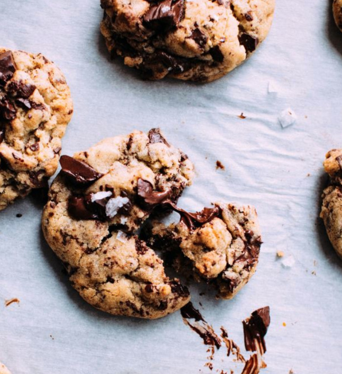 Через час вытащите тесто из холодильника и разделите на 4 равные части. Разогрейте духовку до 170 градусов Цельсия. Скатайте из теста 4 колбаски примерно 30 см длиной (как длина стандартного противня). Проложите 2 противня пекарской бумагой и на каждый выложите по 2 колбаски на хорошем расстоянии друг от друга (печенье будет расти в ширину), предварительно раздавив их ладонью так, чтобы они стали плоскими. Выпекайте ПО 1 ПРОТИВНЮ ЗА РАЗ примерно по 12 минут — вытаскивайте, пока оно не начнет становиться коричневым.